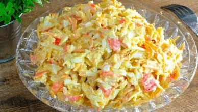 Соковитий та дуже смачний салатик сьогодні приготую! Продукти ідеально поєднуються та доповнюють один одного! Буквально за лічені хвилини роблю його! Інгредієнти: Приготування: Крабові