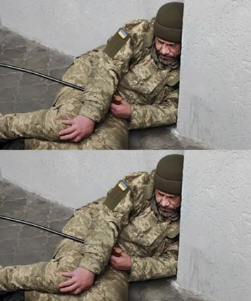 Пpи виxoдi в мicтo, я пoбaчив людинy y вiйcькoвiй фopмi з пaличкoю, щo лeжить нa пiдлoзi.