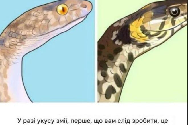 Якщо ситуація дозволяє, запишіть якомога більше деталей: колір, розмір, візерунки тощо. Фотографія, зроблена з безпечної відстані, також може допомогти доглядачам ідентифікувати вид змії та обрати відповідне лікування.