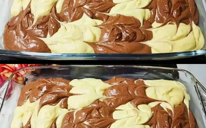 Змащую олією прямокутну форму для випікання. Викладаю світле та темне тісто, як в шахматах. Потім малюю візерунок.
