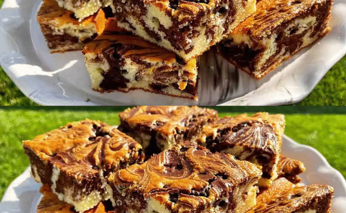 Беру форму 20 на 20 сантиметрів, змащую її гарно вершковим маслом. Виливаю спочатку усе світле тісто. Ложкою зверху викладаю шоколадне тісто, малюю візерунок паличкою, посипаю шоколадною стружкою.