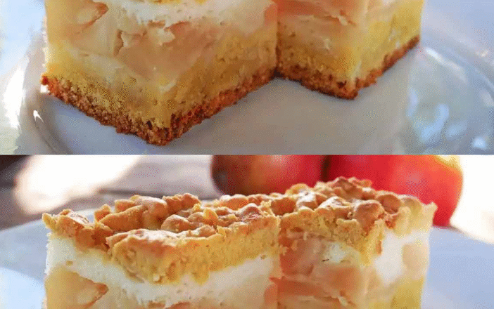У форму на тісто викладаю почищені й нарізані шматочками яблука, коли у мене попадаються кислі яблука, я їх посипаю цукром.