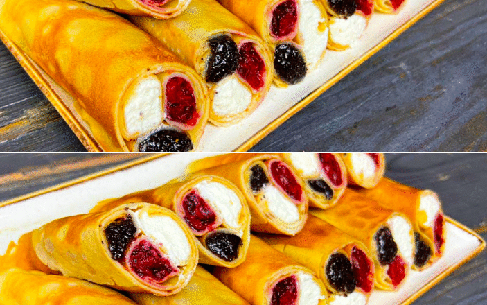 Друзі, сьогодні ми з вами приготуємо млинці з потрійною начинкою – сир, вишня та мак. Це дуже легко та надзвичайно смачно. Обов’язково готуйте та діліться враженнями