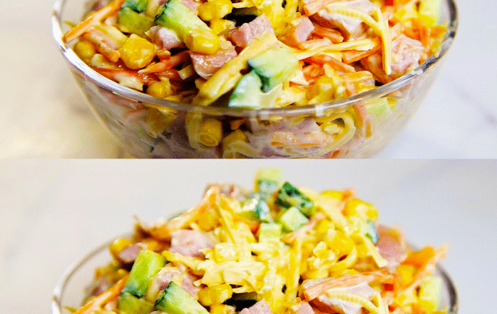 Нічого варити, запікати чи смажити не треба. Салат готується буквально за хвилинку. По смаках виходить дуже збалансований, а по грошах – бюджетний.