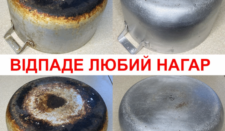 Дістаю каструлю з води і прибираю ножиком чорний нагар (він буде дуже добре відходити), а далі, щоб відчистити залишки – наношу пасту і добре працюю дротиком чи твердою губкою.