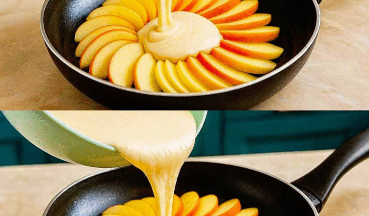 Сковорідку злегка змащую вершковим маслом. Дно посипаю трішки цукром — саме він дає ту карамельну скоринку, через яку пиріг так ароматно пахне. Викладаю яблука рівним шаром. А зверху — заливаю тісто.