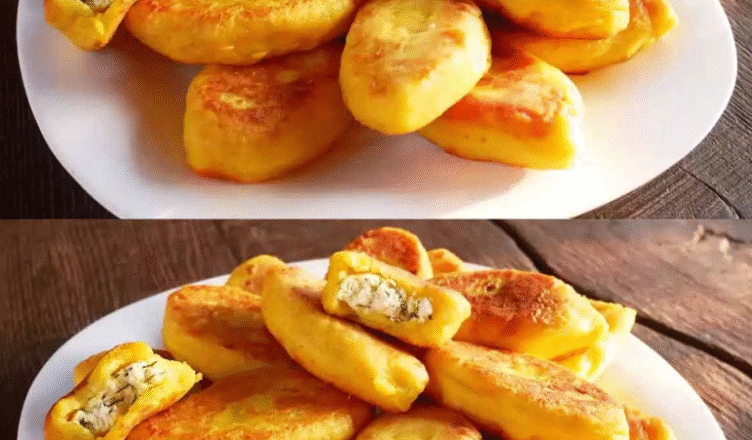 З тіста формую коржики руками та викладаю всередину начинку, защипаю.