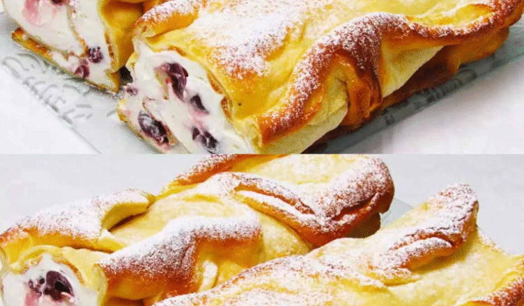 Вершковий сир кладу у миску, додаю цукрову пудру та вершки, замішую міксером до пишності крему. На тісто викладаю крем, поверх кладу ягоди, закручую рулет.