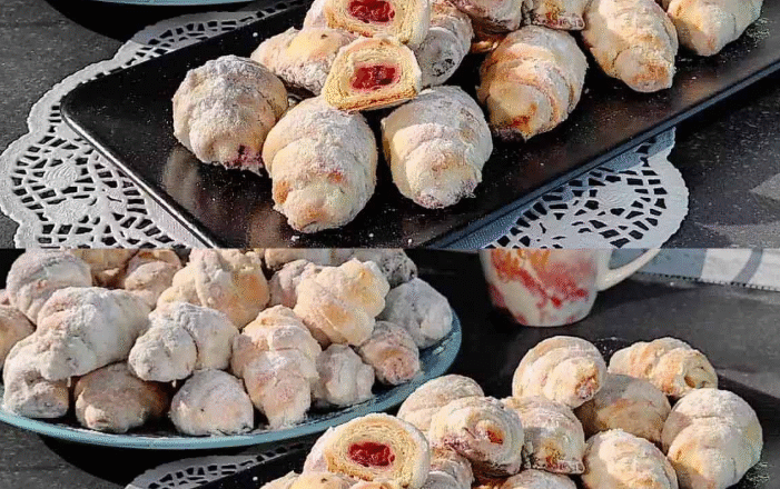 Приготую улюблені та смачні рогалики на сметані та смальці з вишнею! Виходять розсипчасті й такі смачні! Все завдяки свинячому жиру!