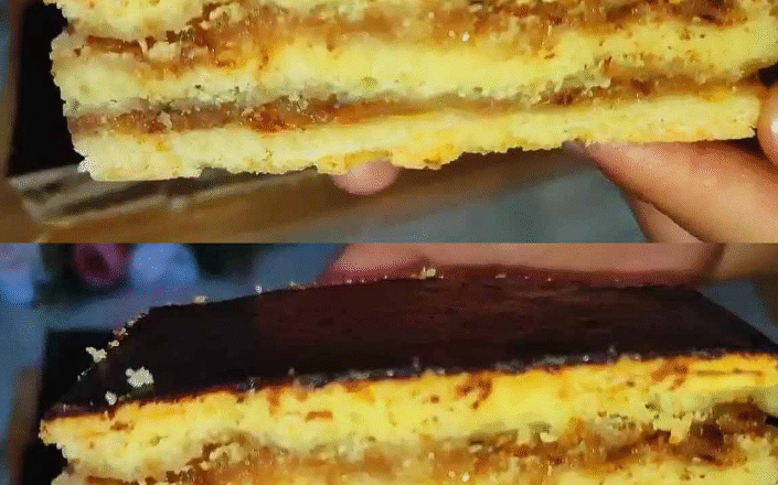 Потім тісто перекладаю на стіл, ділю на 3 рівні частини, розкатую прямокутні пласти до розміру форми (35 на 25 см). Викладаю перший пласт у форму застелену пергаментом.