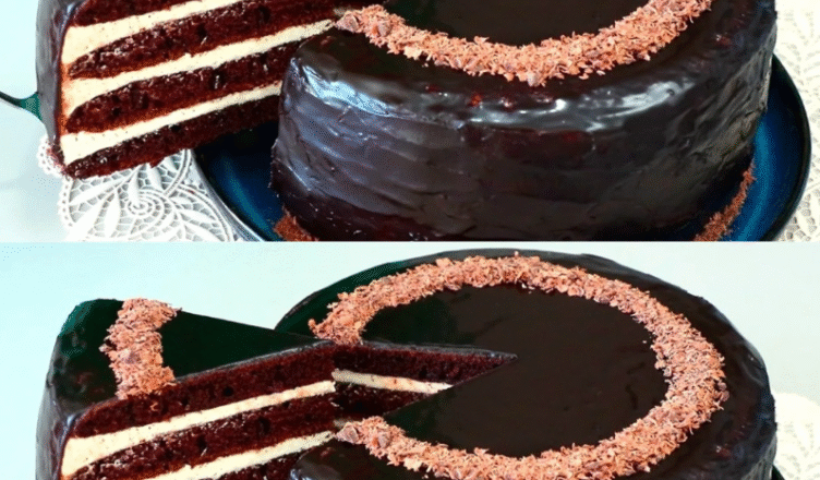Змішайте цукор, какао, молоко і доведіть до кипіння на середньому вогні, постійно помішуючи. Додайте масло, розмішайте і остудіть. Полийте торт зверху і по боках, прикрасьте натертим шоколадом.