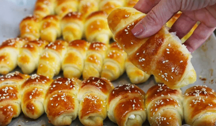 Перекладаю на деко застелене пергаментом, накриваю рушником на 30 хвилин. Потім жовток збиваю з молоком й змащую. Посипаю кунжутом. Ставлю у розігріту духовку до 80 градусів, випікаю хвилин 20–25. Потім виймаю, накриваю їх рушником й залишаю охолонути.