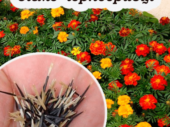 Для підготовки грядок видаліть старі рослини і зберіть насінні коробочки з чорнобривців. Легко розпушіть ділянку, зробіть неглибокі лунки та висійте насіння прямо в ґрунт.
