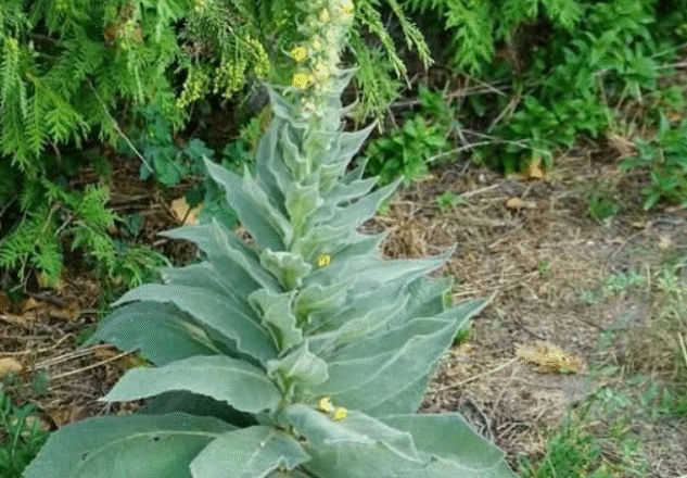 Коров’як звичайний (Verbascum thapsus) – це висока рослина з м’яким, пухнастим листям і жовтими квітами, яку часто можна знайти вздовж узбіч доріг, на полях і пустищах.