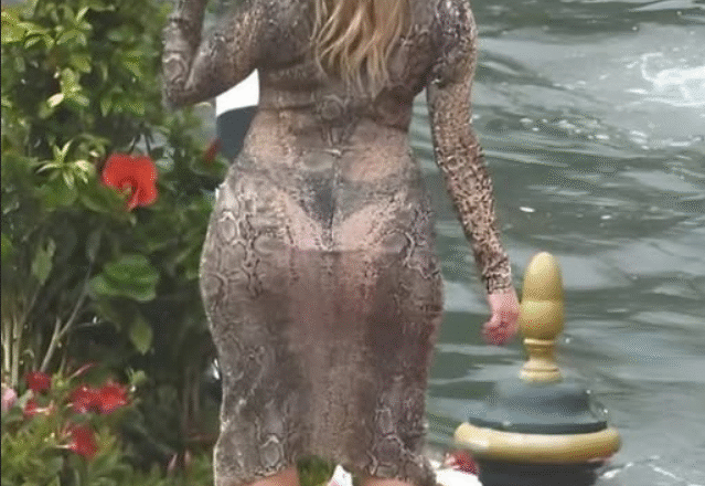 Співачка була одягнена в облягаючу, прозору сукню з тваринним принтом.