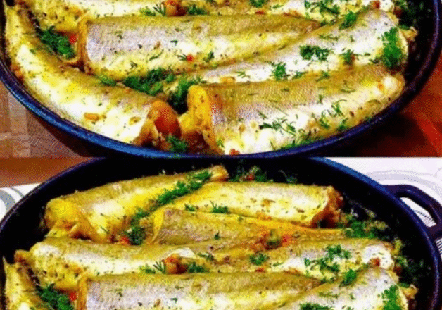 Коли рибка готова — нарізаю свіжий кріп (можна петрушку, що є в холодильнику), і трішечки посипаю зверху — для запаху й краси. Смачного!