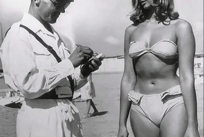 На початку 20-го століття плавання було зовсім не гламурним. Жінки носили важкий, закриваючий вовняний одяг, більше схожий на піжами, ніж на купальники. Мета? Насолоджуватися морем, залишаючись «пристойним». На деяких пляжах працівники навіть перевіряли довжину купальних спідниць сантиметровою стрічкою! Пляж тоді був місцем респектабельності, але ще не свободи.