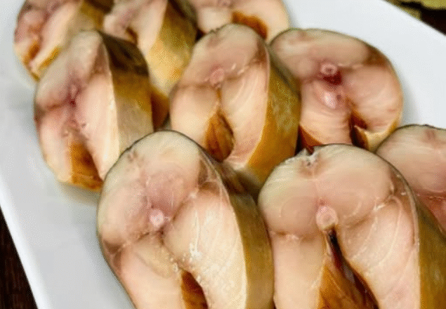 Охолоджуємо, проціджуємо та заливаємо скумбрію. На годину залишаємо за кімнатної температури.