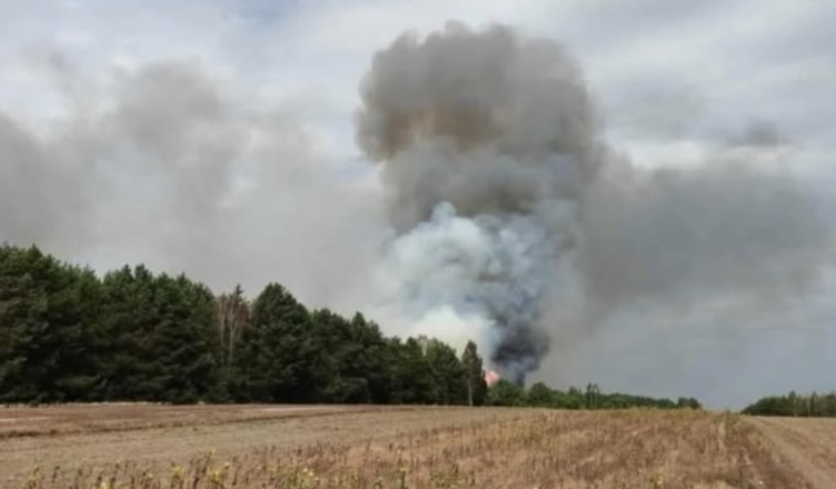 Полум’я швидко поширилося за його межі, охопивши сусідні поля та ділянку лісу, що знаходиться неподалік.