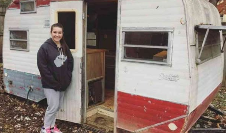 Знову за допомогою сім’ї Еллі створила диво. І хто міг би подумати, що старий розвалений трейлер стане таким затишним місцем. Дівчина замінила гнилу дерев’яну обшивку, вимила та перефарбувала стіни. Усередині встановила розкладний стіл, який перетворюється на ліжко.