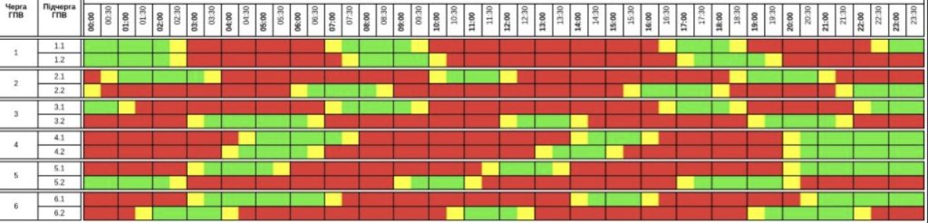 Знеструмлення охоплюють шість черг споживачів. Вони триватимуть від 3 год до 4 год для кожної з черг у різний час доби: