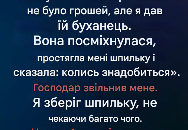 Вагітна жінка, що благала про хліб, підійшла до нашої пекарні. У неї не було грошей, але я дала їй буханець. Вона посміхнулася, простягла мені шпильку для волосся і сказала: «Якось вона тобі знадобиться».
