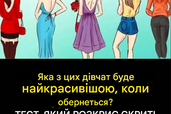 Уявіть: лише одна картинка здатна розповісти про вас те, чого ви самі про себе не знаєте! Наш мозок, наче радар, миттєво вихоплює те, що притягує, заспокоює чи дивовижно точно відбиває нас самих. Цей неймовірний візуальний тест побудований саме на перших враженнях. Перед вами п’ять загадкових жіночих силуетів, знятих зі спини. Ваше завдання — інтуїтивно вибрати ту, яка здається вам найкрасивішою.