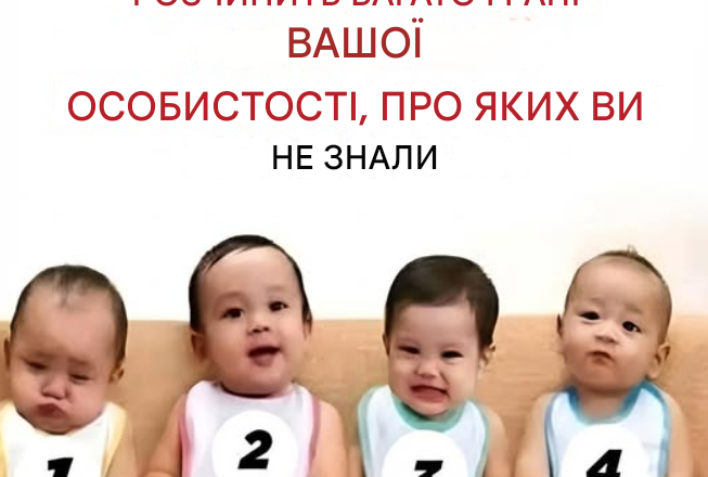 Уявіть: перед вами чарівна картинка, на якій чотири немовляти. Вони пронумеровані від 1 до 4. Питання просте до неможливості: «Хто з них дівчинка?» Ви моментально робите свій вибір, підкоряючись лише інстинкту, чи не так? А що, якщо ця імпульсивна відповідь здатна розкрити про вас більше, ніж ви думаєте? Звичайно, це не наукове дослідження, але чудовий шанс глянути на себе з нового боку і, можливо, посміхнутися!