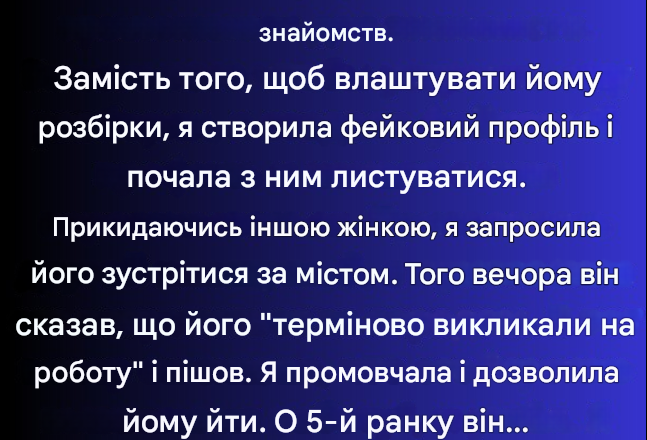 Я ніколи не вважала себе людиною, здатною на шпигунство. Це завжди здавалося чимось із фільмів чи кримінальних історій — не зі справжнього життя, і вже точно не з мого.