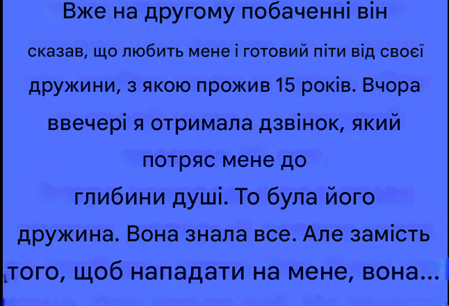 Вона зателефонувала не для того, щоб покарати мене — вона хотіла попередити, щоб я не будувала життя на його обмані. Вона навіть поділилася ресурсами та підтримкою, які допомогли їй впоратися зі своїм болем.