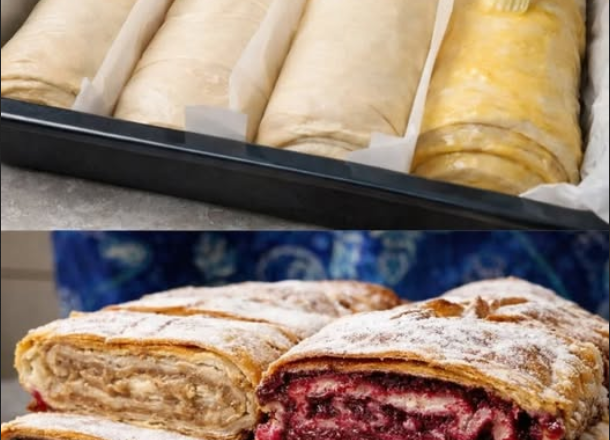 - Акуратно скрутіть штрудель, підвертаючи боки.