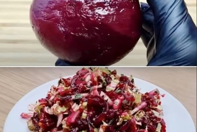- У салатнику з’єднуємо буряк, капусту, цибулю та петрушку.