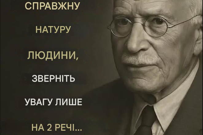 Юнг наполягав: характер не виставляється напоказ через гучні заяви чи ретельно створений образ. Він видно у тому, як люди поводяться, коли немає ні вигоди, ні публіки. Ось ці два ключові індикатори: