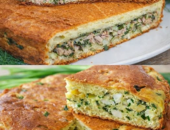 Форму змастіть олією, вилийте половину тіста. Викладіть начинку та залийте рештою тіста.