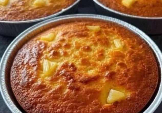 Очистіть ананас від шкірки та видаліть усі «вічка». Наріжте його тонкими скибочками та обсмажте їх на сковороді з 40 г вершкового масла. Додайте 2 ст. л. цукру та карамелізуйте протягом 2 хвилин. Вилийте сік від готування ананаса на дно форми, потім викладіть скибочки ананаса внахлест.