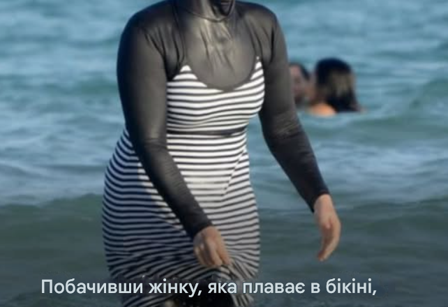 У цьому виді спорту часто можна побачити жінок у купальниках. Серед спортсменів був мусульманин. Він був у ісламській шапці та з довгою бородою. Коли повз нього пройшла модель, його реакція була несподіванкою.