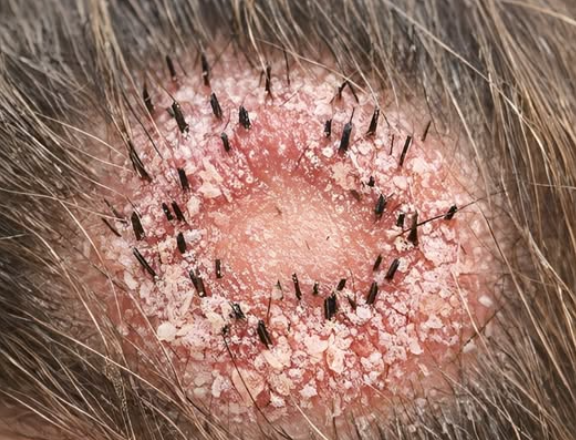 Кругла червона пляма на шкірі голови з ламким або рідким волоссям може свідчити про інфекцію, яка потребує негайного втручання, особливо якщо вона поширюється. Якщо не лікувати, інфекції шкіри голови можуть швидко погіршитися та викликати біль, подразнення або запалення.