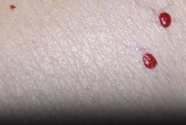 Як вони виглядають: маленькі, яскраво-червоні, опуклі горбики. Вони схожі на маленькі рубінові куполи на шкірі. Зазвичай вони нешкідливі та стають більш поширеними з віком.