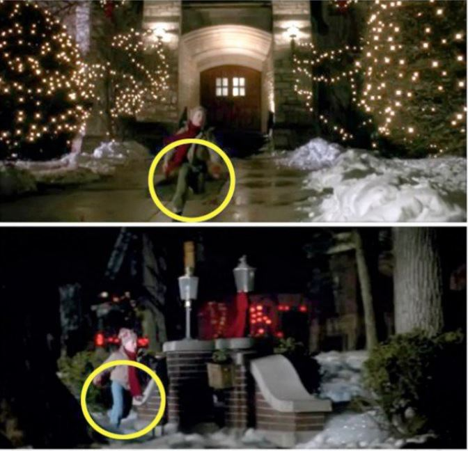 Штани Кевіна у фільмі «Сам удома» якимось чином примудрилися змінитися під час бігу.