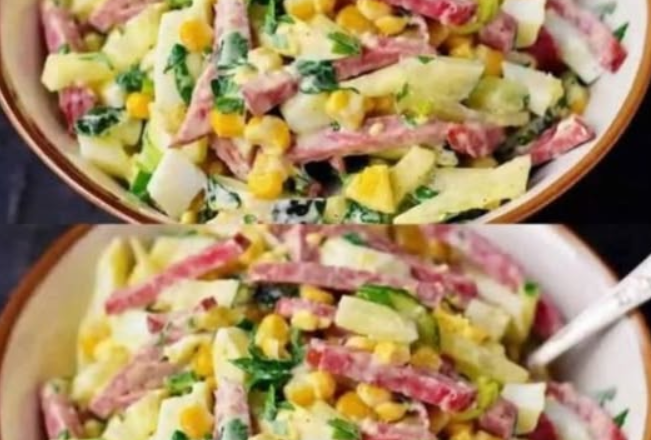 Приготую дуже смачний салат з кукурудзою та ковбасою!