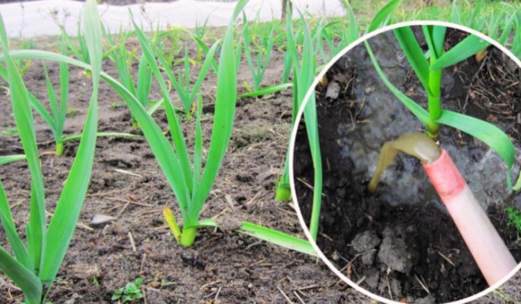 Полученным раствором поливают чеснок, когда у него появляется четвертый лист.