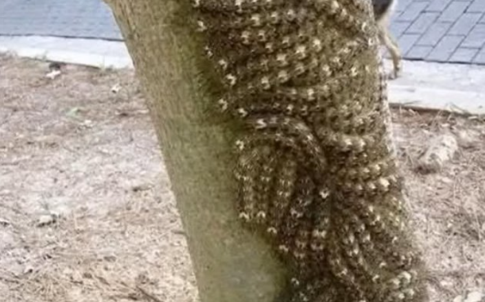 Те, що здавалося гарним природним візерунком, насправді виявилося густим скупченням гусениць лономії — однієї з найотруйніших комах у світі. Ідеально замасковані під корою, вони так добре зливаються з навколишнім середовищем, що ніхто й не запідозрить загрозу.