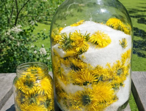 Найсолодшою частиною рослини є бутони, які ще не розпустилася. Якщо додати до квітів кульбаби певну кількість цукру, то вийде так званий мед з кульбаб. Пелюстки кульбаби необхідно скласти в невелику баночку, залити суцвіття холодною кип’яченою водою і залишити на ніч. Після того, як квіти кульбаби настоялися, настій необхідно процідити, а квіти віджати. Потім слід додати сік з двох лимонів і 2,5 кг цукру, та варити суміш до тих пір, поки «мед» не стане густим.