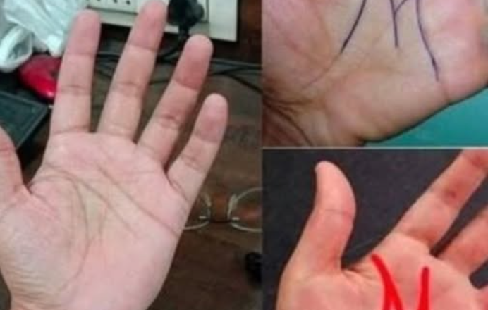 - Тепер візьміть горизонтальну лінію (лінія 3), яка починається від вашого вказівного пальця і тягнеться вгору до мізинця. Вона починається: