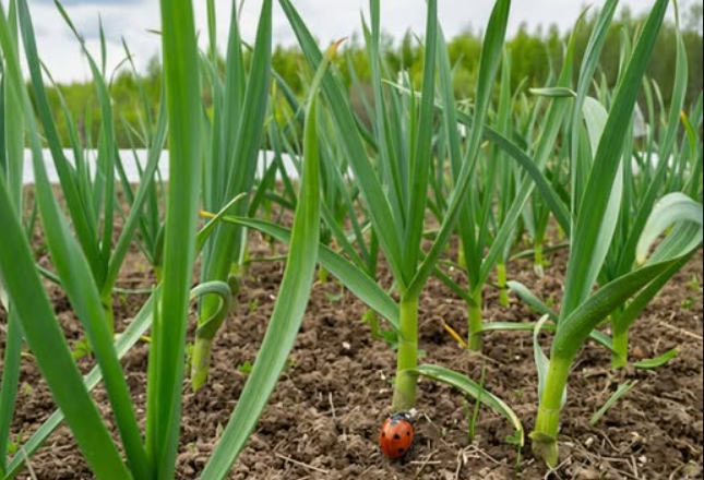 У період холодного ґрунту найкращим варіантом для часнику є позакореневе підживлення. Його варто проводити тоді, коли рослина вже сформувала щонайменше чотири листки. Такий спосіб дає змогу поживним речовинам швидко потрапляти через листя, оминаючи коріння, яке в холодних умовах працює повільніше.